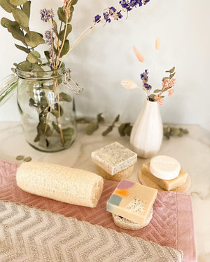 Der Luffaschwamm besteht aus sehr stabilen Fasern und wird mit natürlich vorkommendem Thermalwasser bei einer Temperatur von 43° C behandelt. Dieser Luffaschwamm erhält dadurch eine hautschonende Konsistenz, die bei trockener oder nasser Anwendung beibehalten wird. Erfahre mehr über den Luffaschwamm in unserem Blogpost.